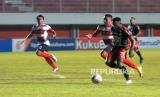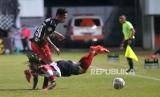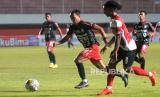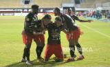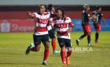 REPUBLIKA.CO.ID, SLEMAN -- Sayap kiri Madura United Ronaldo Kwateh melakukan selebrasi bersama Pedro usai membobol gawang Bali United pada lanjutan pertandingan BRI Liga 1 di Stadion Maguwoharjo, Sleman, Yogyakarta, Senin (12/12/2022).