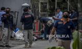 Petugas kepolisian membawa berkas usai melakukan penggeledahan di salah satu indekos di Jalan Waas, Batununggal, Kota Bandung, Selasa (13/12/2022). Penggeledahan lanjutan di indekos tersebut merupakan pemeriksaan dan pengembangan dari peristiwa ledakan bom bunuh diri di Mapolsek Astana Anyar yang terjadi pada Rabu (7/12/2022). Republika/Abdan Syakura (FOTO : ABDAN SYAKURA/REPUBLIKA)