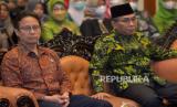 Menteri Kesehatan Budi Gunadi Sadikin bersama Ketua Umum Pengurus Besar Nahdlatul Ulama (PBNU) Yahya Cholil Staquf hadir dalam acara penandatanganan nota kesepahaman di Jakarta, Rabu (14/12/2022). PBNU bersama Kementerian Kesehatan melakukan kerjasama salah satunya terkait Menahan Laju Stunting di Indonesia.  (FOTO : Republika/Prayogi)