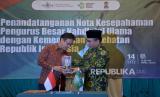 Menteri Kesehatan Budi Gunadi Sadikin bersama Ketua Umum Pengurus Besar Nahdlatul Ulama (PBNU) Yahya Cholil Staquf melakukan penandatanganan nota kesepahaman di Jakarta, Rabu (14/12/2022). PBNU bersama Kementerian Kesehatan melakukan kerjasama salah satunya terkait Menahan Laju Stunting di Indonesia.  (FOTO : Republika/Prayogi)