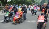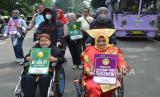 Penyandang disabilitas melakukan parade mengelilingi Gedung Sate saat Festival Disabilitas bertajuk Senyum Disabilitas Jawa Barat untuk Indonesia, di Halaman Gedung Sate, Kota Bandung, Rabu (14/12/2022). Festival Disabilitas diikuti oleh berbagai yayasan disablitas dari berbagai kota di Jawa Barat, diselenggarakan dalam rangka Hari Disabilitas Internasional. (FOTO : Edi Yusuf/Republika)