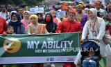 REPUBLIKA.CO.ID, BANDUNG -- Penyandang disabilitas melakukan parade mengelilingi Gedung Sate saat Festival Disabilitas bertajuk Senyum Disabilitas Jawa Barat untuk Indonesia, di Halaman Gedung Sate, Kota Bandung, Rabu (14/12/2022).