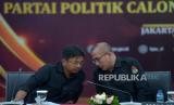 REPUBLIKA.CO.ID, JAKARTA -- Suasana rapat pleno Rekapitulasi Nasional Hasil Verifikasi dan Penetapan Partai Politik Calon Peserta Pemilu Tahun 2024 di Kantor KPU, Jakarta, Rabu (14/12/2022). Dalam Rapat pleno tersebut KPU menetapkan sebanyak 17 partai politik sebagai peserta pemilu 2024. Republika/Prayogi