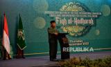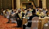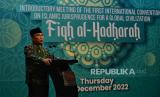 REPUBLIKA.CO.ID, JAKARTA -- Ketua Umum PBNU Yahya Cholil Staquf memaparkan pidato terkait fiqih peradaban saat acara pengantar pertemuan internasional pertama tentang hukum islam untuk peradaban global di Jakarta, Kamis (15/12/2022). Acara tersebut bertujuan untuk membangun landasan fiqih untuk perdamaian dan harmoni global.