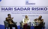 REPUBLIKA.CO.ID, JAKARTA -- Ketua Masyarakat Sadar Risiko Indonesia (MASINDO) Dimas Syailendra bersama Founder sekaligus CEO QM Financial Ligwina Hananto memberikan paparan saat diskusi dalam rangka Hari Sadar Risiko Nasional di Jakarta, Kamis (15/12/2022). Kegiatan ini menjadi momentum untuk mengajak para pemangku kepentingan menyebarluaskan konsep sadar risiko bagi masyarakat.