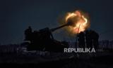 Tentara Ukraina menembakan meriam ke arah wilayah posisi militer Rusia di wilatyah Bakhmut, dekat Donetsk Ukraina, Kamis 15/12/2022) (FOTO : AP)