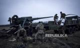 Tentara Ukraina bersiap menembakan meriam ke arah wilayah posisi militer Rusia di wilatyah Bakhmut, dekat Donetsk Ukraina, Kamis 15/12/2022) (FOTO : AP)