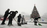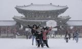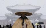 REPUBLIKA.CO.ID, SEOUL -- Penjaga Istana berdiri di luar Istana Gyeongbok, Seoul, Korea Selatan di tengah guyuran salju Kamis, (15/12/2022). Istana ini merupakan salah satu istana pada masa Dinasti Joseon dan landmark di Seoul, Korea Selatan.