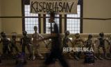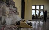 REPUBLIKA.CO.ID, BANDUNG -- Pengunjung melihat karya seni rupa yang dipajang pada pameran Art Braga Urban Culture di Gedung Gas Negara, Braga, Kota Bandung, Kamis (15/12/2022). Pameran kolaborasi sejumlah seniman dan komunitas Kota Bandung tersebut menampilkan sejumlah karya seni rupa seperti patung, sulam dan seni instalasi yang mengusung tema tentang permasalahan lingkungan, kritik sosial dan keadilan di Indonesia. Republika/Abdan