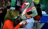 Siswa kelas 1 mengikuti imunisasi Difteri Tetanus (DT) saat Bulan Imunisasi Anak Sekolah (BIAS) Tahap Dua di SD Masjid Syuhada, Yogyakarta, Jumat (16/12/2022). Tenaga Kesehatan dari Puskesmas Gondomanan II menyuntikkan vaksin DT untuk siswa kelas 1, sedangkan untuk kelas 2 dan 5 diberikan vaksin Tetanus Difteri (Td) penguat. Program BIAS ini untuk membangun kekebalan tubuh dan membebaskan siswa sekolah dari penyakit campak, difteri, dan tetanus. (FOTO : Republika/Wihdan Hidayat)