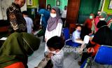 REPUBLIKA.CO.ID, YOGYAKARTA -- Siswa kelas 1 mengikuti imunisasi Difteri Tetanus (DT) saat Bulan Imunisasi Anak Sekolah (BIAS) Tahap Dua di SD Masjid Syuhada, Yogyakarta, Jumat (16/12/2022).