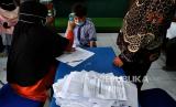 Pemeriksaan kesehatan siswa kelas 1 sebelum mengikuti imunisasi Difteri Tetanus (DT) saat Bulan Imunisasi Anak Sekolah (BIAS) Tahap Dua di SD Masjid Syuhada, Yogyakarta, Jumat (16/12/2022). Tenaga Kesehatan dari Puskesmas Gondomanan II menyuntikkan vaksin DT untuk siswa kelas 1, sedangkan untuk kelas 2 dan 5 diberikan vaksin Tetanus Difteri (Td) penguat. Program BIAS ini untuk membangun kekebalan tubuh dan membebaskan siswa sekolah dari penyakit campak, difteri, dan tetanus. (FOTO : Republika/Wihdan Hidayat)