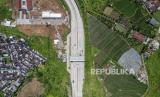 Foto udara sejumlah kendaraan melintas di ruas Jalan Tol Cileunyi-Sumedang-Dawuan di Sumedang Utara, Kabupaten Sumedang, Jumat (16/12/2022). Dua ruas Jalan Tol Cisumdawu Seksi 2 dan Seksi 3 atau dari Gerbang Tol Pamulihan hingga Gerbang Tol Cimalaka dibuka secara fungsional serta pengoperasiannya masih belum dikenakan tarif atau gratis. Hal tersebut guna mendukung jalur Natal 2022 dan Tahun Baru 2023. (FOTO : ABDAN SYAKURA/REPUBLIKA)