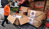 Stok bahan protokol kesehatan yang akan dibagikan untuk warga dan wisatawan di kawasan Malioboro, Yogyakarta, Jumat (16/12/2022) Sebanyak 150.175 pcs bahan protokol kesehatan dibagikan untuk wisatawan, pengguna jalan, dan pelaku usaha wisata jelang libur Nataru. Bahan protokol kesehatan ini berisi masker, hand sanitizer, dan sabun cuci tangan. Kegiatan ini bertujuan mengingatkan kembali penerapan protokol kesehatan dan vaksinasi Covid-19 yang terlah terbukti dapat mencegah serta menekan angka penularan Covid-19. (FOTO : Republika/Wihdan Hidayat)