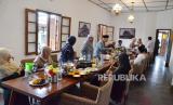 Suasana Kuliner Rumah Jenderal, di Land of Wakaf Teras Lembang, Jalan Tangkuban Parahu, Kecamatan Lembang, Kabupaten Bandung Barat, Jumat (16/12/2022). Rumah makan dengan menu khas sambel bakar, liwetan dan sate ini merupakan program rumah makan berbasis wakaf produktif. (FOTO : Edi Yusuf/Republika)