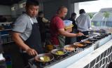 Aktivitas juru masak kuliner khas di dapur Rumah Jenderal, di Land of Wakaf Teras Lembang, Jalan Tangkuban Parahu, Kecamatan Lembang, Kabupaten Bandung Barat, Jumat (16/12/2022). Rumah makan dengan menu khas sambel bakar, liwetan dan sate ini merupakan program rumah makan berbasis wakaf produktif. (FOTO : Edi Yusuf/Republika)