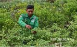 Sukar, warga sekitar pabrik memetik cabai rawit di fasilitas Edupark Semen Gresik Rembang, Jumat (16/12/2022). Fasilitas Edupark seluas 1,6 ha yang bisa dimanfaatkan para petani untuk belajar. Edupark ini berkonsep pertanian dan peternakan terpadu. (FOTO : Republika/Yogi Ardhi)