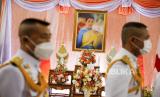 Petugas Thailand berjalan melewati potret Putri Thailand Bajrakitiyabha setelah mengharapkan kesembuhannya, di dalam Rumah Sakit Memorial Chulalongkorn di Bangkok, Thailand, 16 Desember 2022. Putri Thailand Bajrakitiyabha dirawat di Rumah Sakit Memorial King Chulalongkorn setelah dia jatuh pingsan pada malam hari 14 Desember 2022 karena gejala terkait jantung, Biro Rumah Tangga Kerajaan mengumumkan pada 15 Desember 2022. Dokter di rumah sakit akan melakukan pemeriksaan dan memberikan perawatan medis, tambah Biro Rumah Tangga Kerajaan. (FOTO : EPA-EFE/DIEGO AZUBEL)
