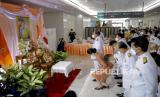 Perdana Menteri Thailand Prayut Chan-o-cha (Tengah) dan istrinya Naraporn Chan-o-cha (C-L) memberikan penghormatan kepada Putri Thailand Bajrakitiyabha di dalam Rumah Sakit Peringatan Chulalongkorn di Bangkok, Thailand, 16 Desember 2022. Putri Thailand Bajrakitiyabha adalah dirawat di Rumah Sakit Memorial King Chulalongkorn setelah dia jatuh pingsan pada malam tanggal 14 Desember 2022 karena gejala terkait jantung, Biro Rumah Tangga Kerajaan mengumumkan pada 15 Desember 2022. Dokter di rumah sakit akan melakukan pemeriksaan dan memberikan perawatan medis, Biro Rumah Tangga Kerajaan menambahkan (FOTO : EPA)