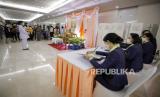 Orang-orang menandatangani buku harapan baik untuk Putri Thailand Bajrakitiyabha, berharap untuk kesembuhannya, di dalam Rumah Sakit Memorial Chulalongkorn di Bangkok, Thailand, 16 Desember 2022. Putri Thailand Bajrakitiyabha dirawat di Rumah Sakit Memorial King Chulalongkorn setelah dia jatuh pingsan pada malam hari 14 Desember 2022 karena gejala terkait jantung, Biro Rumah Tangga Kerajaan mengumumkan pada 15 Desember 2022. Dokter di rumah sakit akan melakukan pemeriksaan dan memberikan perawatan medis, tambah Biro Rumah Tangga Kerajaan. (FOTO : EPA-EFE/DIEGO AZUBEL)