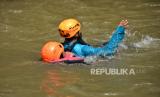 REPUBLIKA.CO.ID, BOGOR -- Jurnalis saat mengikuti pelatihan water rescue di Sungai Cisadane, Kabupaten Bogor, Jawa Barat, Sabtu (17/12/2022). Kegiatan tersebut diikuti sebanyak 20 peserta yang terdiri dari jurnalis berbagai media dan blogger.