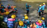 Dompet Dhuafa menggelar pelatihan dasar water rescue dan vertical rescue selama dua hari dengan tema agenda Jurnalis Siaga Bencana. Selain water rescue, peserta juga mempraktikkan mengendalikan perahu karet dan mencoba menuruni jeram di Sungai Cisadane. kegiatan tersebut bertujuan untuk melatih kemampuan jurnalis saat meliput di lokasi bencana khususnya di Indonesia. Republika/Thoudy
