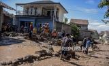Warga membersihkan material lumpur pascabanjir bandang di Sawahdadap, Kecamatan Cimanggung, Kabupaten Sumedang, Ahad (18/12/2022). Banjir bandang akibat intensitas hujan yang tinggi pada Sabtu (17/12/2022) petang tersebut mengakibatkan sejumlah rumah rusak dan ratusan warga mengungsi. Republika/Abdan Syakura (FOTO : ABDAN SYAKURA/REPUBLIKA)