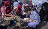 Anak-anak mengelap kaki ibunya saat aksi cuci kaki ibu di Jalan Suryapranoto, Gambir, Jakarta, Ahad (18/12/2022). Kegiatan yang diikuti oleh ratusan peserta dalam rangka jelang Hari Ibu tersebut bertajuk Perempuan Berdaya Indonesia Maju. Republika/Putra M. Akbar (FOTO : Republika/Putra M. Akbar)