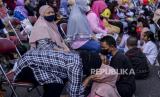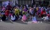 Anak-anak beserta ibunya menghadiri aksi cuci kaki ibu di Jalan Suryapranoto, Gambir, Jakarta, Ahad (18/12/2022). Kegiatan yang diikuti oleh ratusan peserta dalam rangka jelang Hari Ibu tersebut bertajuk Perempuan Berdaya Indonesia Maju. Republika/Putra M. Akbar (FOTO : Republika/Putra M. Akbar)