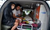 Peserta aksi mogok makan berada di dalam mobil ambulance usai di periksa oleh tim dokter di Komnas HAM, Jakarta, Ahad (18/12/2022). Pada hari ke-6 aksi mogok makan tersebut sebanyak 5 peserta mengalami penurunan kesehatan dan dilarikan ke rumah sakit terdekat. Aksi mogok makan ini dilakukan sebagai bentuk protes berbagai tindakan kejahatan dan pelanggaran HAM yang diduga dilakukan PT. Amman Mineral Nusa Tenggara (AMNT). Republika/Prayogi. (FOTO : Republika/Prayogi)