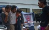 REPUBLIKA.CO.ID,JAKARTA -- Peserta aksi mogok makan menuju mobil ambulance usai di periksa oleh tim dokter di Komnas HAM, Jakarta, Ahad (18/12/2022).