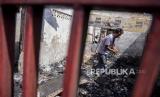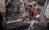 Warga mengambil puing-puing sisa kebakaran di kawasan Manggarai, Jakarta, Ahad (18/12/2022). Kebakaran yang terjadi pada Sabtu (17/12/2022) tersebut menghanguskan 52 rumah semi permanen yang diduga akibat sambaran petir. (FOTO : Republika/Putra M. Akbar)