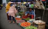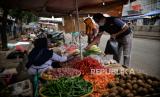 Pedagang melayani pembeli di pasar tradisional Pasar Minggu, Jakarta, Senin (19/12/2022). Menjelang hari libur Natal dan Tahun Baru 2023, sejumlah harga bahan pokok seperti bawang merah, cabai rawit merah, cabai merah dan daging ayam mengalami kenaikan. Menurut pedagang setempat, harga cabai rawit merah di pasar tersebut mencapai Rp45.000 per kilogram, bawang merah Rp35.000 per kilogram, cabai merah Rp35.000 per kilogram dan daging ayam Rp45.000 per kilogram. Sejumlah pedangang mengeluhkan imbas dari kenaikan harga bahan pokok berdampak pada menurunnya daya beli masyarakat hingga 50 persen. (FOTO : Republika/Thoudy Badai)