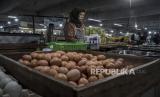 Pedagang telur ayam menunggu pembeli di kiosnya di Pasar Kosambi, Kota Bandung, Rabu (21/12/2022). Pedagang di pasar tersebut menyatakan, jelang perayaan Natal dan Tahun Baru 2023 sejumlah bahan pokok mengalami kenaikan diantaranya harga daging ayam dari Rp30 ribu menjadi Rp35 ribu per kilogram, telur ayam menjadi Rp22 ribu, cabai rawit menjadi Rp50 ribu, bawang merah menjadi Rp35 ribu dan beras dari Rp9 ribu menjadi Rp10 ribu. Republika/Abdan Syakura (FOTO : ABDAN SYAKURA/REPUBLIKA)