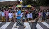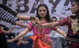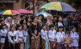 Sejumlah anak melakukan peragaan busana menggunakan kebaya pada Festival Kebaya Liogenteng di Jalan Lio Genteng, Kecamatan Astanaanyar, Kota Bandung, Kamis (22/12/2022).