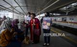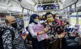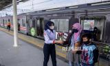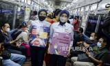 REPUBLIKA.CO.ID,JAKARTA -- Petugas KAI Commuter Line memegang poster sosialisasi anti pelecehan seksual di Jakarta, Kamis (22/12/2022).