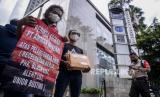 Aktivis dari Aliansi Masyarakat Anti Mafia Tambang saat akan mendatangi Kantor PBB Perwakilan Indonesia di Jakarta, Jumat (23/12/2022). Dalam kedatangannya, mereka menyerahkan data kejahatan korporasi serta pelanggaran HAM PT. Amman Mineral Nusa Tenggara kepada perwakilan PBB serta ke 300 kedutaan, konsulat, Bank Internasional, Lembaga HAM dan Lembaga Negara diantaranya kebijakan terkait penggunaan tenaga lokal yang minim, skandal koruptif pengelolaan dana CSR, kecelakaan kerja yang hingga menyebabkan kematian pembuangan limbah ke laut serta beberapa pelanggaran yang merugikan masyarakat Sumbawa Barat. (FOTO : Republika/Putra M. Akbar)