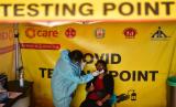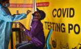 REPUBLIKA.CO.ID,CHENNAI -- Seorang petugas kesehatan India mengumpulkan sampel swab tes COVID-19 dari seorang penumpang yang tiba dengan penerbangan internasional di bandara internasional Chennai, di Chennai, India, Sabtu (24/12/2022).