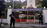 REPUBLIKA.CO.ID, YOGYAKARTA -- Pasukan Brimob berjaga saat misa Natal di Gereja Katolik Santo Antonius Padua, Kota Baru, Yogyakarta, Ahad (25/12/2022). Brimob Polda Yogyakarta mengerahkan satu robot pendeteksi bahan peledak dan rantis baracuda untuk mengamankan ibadah Natal 2022 di Kota Yogyakarta. Ini ditujukan untuk memberikan rasa aman bagi jemaat gereja yang akan merayakan saat Natal.