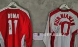 Koleksi Jersey Timnas Indonesia disertai tanda tangan pemain dipajang saat pameran jersey oleh Komunitas Jersey Timnas Indonesia (KJTI) di Garasi Tirtodipuran 17, Yogyakarta, Senin (26/12/2022). Sebanyak 24 Jersey Timnas Indonesia dari berbagai tahun dipajang untuk memeriahkan gelaran AFF 2022. Mayoritas jersey yang dipamerkan juga yang dipakai untuk ajang AFF. Di pameran ini pengunjung bisa melihat sejarah corak jersey sepak bola Timnas Indonesia dari masa ke masa. (FOTO : Republika/Wihdan Hidayat)