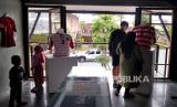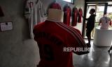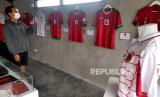 Pengunjung melihat koleksi Jersey Timnas Indonesia saat pameran jersey oleh Komunitas Jersey Timnas Indonesia (KJTI) di Garasi Tirtodipuran 17, Yogyakarta, Senin (26/12/2022). Sebanyak 24 Jersey Timnas Indonesia dari berbagai tahun dipajang untuk memeriahkan gelaran AFF 2022. Mayoritas jersey yang dipamerkan juga yang dipakai untuk ajang AFF. Di pameran ini pengunjung bisa melihat sejarah corak jersey sepak bola Timnas Indonesia dari masa ke masa. (FOTO : Republika/Wihdan Hidayat)