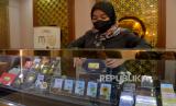 REPUBLIKA.CO.ID, JAKARTA -- Pegawai menunjukkan emas Pegadaian di Galeri 24 Pegadaian, Jakarta, Senin (26/12/2022). Harga emas diprediksi akan terus mengalami kenaikan hingga akhir tahun 2022 dan 2023 ini. Ada banyak faktor yang mendorong logam mulia tersebut terus menguat salah satunya krisis ekonomi dunia.