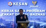 REPUBLIKA.CO.ID, JAKARTA -- Ketua Baznas KH Noor Achmad memberikan sambutan saat peluncuran kerja sama program zakat digital di Jakarta, Senin (26/12/2022). Baznas bekerja sama dengan aplikasi Kesan untuk meningkatkan pelayanan Baznas dan mempermudah muzakki dalam berzakat.