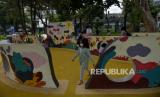 Anak-anak bermain di Taman Literasi Martha Christina Tiahahu, Blok M, Jakarta, Selasa (27/12/2022). Taman literasi tersebut menjadi destinasi wisata alternatif dan murah bagi warga Ibu Kota untuk mengisi liburan. (FOTO : Republika/Prayogi)