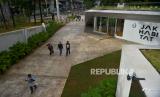 Warga beraktivitas di Taman Literasi Martha Christina Tiahahu, Blok M, Jakarta, Selasa (27/12/2022). Taman literasi tersebut menjadi destinasi wisata alternatif dan murah bagi warga Ibu Kota untuk mengisi liburan. (FOTO : Republika/Prayogi)