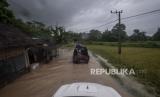 Pengendara roda empat melintasi areal persawahan yang terendam banjir di Desa Idaman, Pandeglang, Banten, Rabu (28/12/2022). Banjir yang menggenang kawasan tersebut sejak hari Minggu (25/12/2022) menyebabkan sawah seluas 400 hektare terancam gagal panen panen. (FOTO : ANTARA FOTO/Muhammad Bagus Khoirunas)