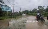 Pengendara roda empat menerobos banjir di Desa Idaman, Pandeglang, Banten, Rabu (28/12/2022). Pada hari keempat bencana banjir yang terjadi di daerah tersebut, sejumlah akses jalan menuju daerah terisolir banjir mulai bisa dilintasi oleh kendaraan roda empat maupun roda dua dengan menggunakan rakit. (FOTO : ANTARA FOTO/Muhammad Bagus Khoirunas)