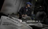 Agen koran beraktivitas di salah satu lapak di Kawasan Cikapundung, Jalan Dr Ir Sukarno, Sumur Bandung, Kota Bandung, Kamis (29/12/2022). Berdasarkan keterangan agen koran di salah satu pusat distribusi koran dan majalah yang telah ada sejak 1970 tersebut, omzet penjualan koran menurun hingga 10 kali lipat atau hanya 180 eksemplar per hari dibandingkan dengan beberapa dekade terakhir yang mampu menjual 1.800 eksemplar per hari. Hal tersebut dikarenakan konvergensi media cetak ke daring dan akses informasi yang mudah melalui internet serta biaya produksi koran yang mahal. Republika/Abdan Syakura (FOTO : ABDAN SYAKURA/REPUBLIKA)