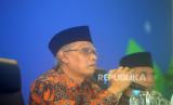 REPUBLIKA.CO.ID,YOGYAKARTA -- Ketua Umum PP Muhammadiyah, Haedar Nashir saat penyampaian refleksi akhir tahun di PP Muhammadiyah, Yogyakarta, Kamis (29/12/2022).
