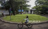 Seorang anak mengendarai sepeda di Taman Lalu Lintas Ade Irma Suryani Nasution, Jalan Belitung, Sumur Bandung, Kota Bandung, Kamis (29/12/2022). Objek wisata yang menawarkan konsep edukasi penyuluhan dan pendidikan keamanan lalu lintas tersebut menjadi salah satu tujuan wisata warga saat libur sekolah pada akhir tahun. Jumlah kunjungan di objek wisata tersebut sebanyak 1.500 orang per harinya. Republika/Abdan Syakura (FOTO : ABDAN SYAKURA/REPUBLIKA)